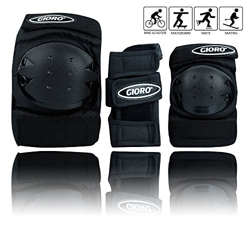 GIORO Adult/Child’s Multi Sports Protective Gear, 3 In 1 Set Knee Pads Elbow Pads Wrist Guards for Skateboarding Skating Cycling Climbing Biking BMX Bicycle Scooter (Black, Adult/Youth)