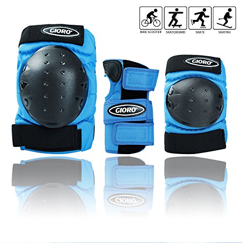 GIORO Adult/Child’s Multi Sports Protective Gear, 3 In 1 Set Knee Pads Elbow Pads Wrist Guards for Skateboarding Skating Cycling Climbing Biking BMX Bicycle Scooter (Blue, Child/Youth)