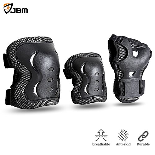 JBM Children Cycling Roller Skating Knee Elbow Wrist Protective Pads–Black / Adjustable Size, Suitable for Skateboard, Biking, Mini Bike Riding and Other Extreme Sports