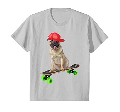 Kids Cute Funny Pug Dog Skateboarding Skater Trucks Shirt Gifts 6 Silver