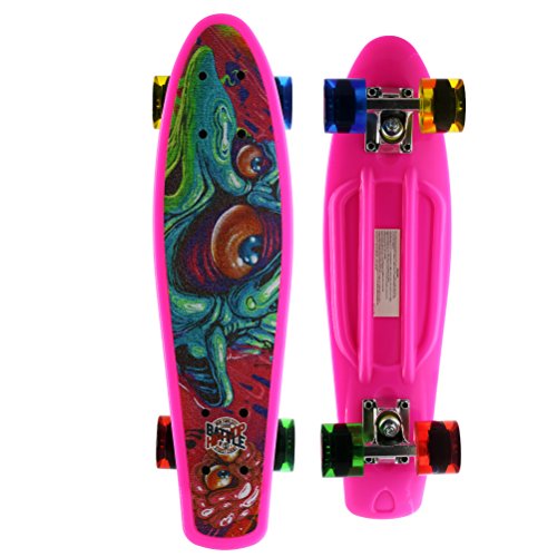 Merkapa Complete 22 inch Skull Style Skateboard for Kids, Beginners (Graffiti Pink)