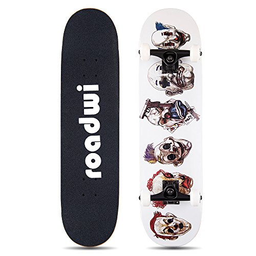- PERSONALIZED DECKING: Roadwi skateboard decks draws with skull head images, its surface is covered with a high-density special material to increase friction and prevent the feet from slipping.