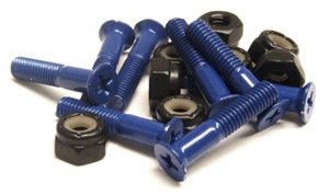 This brand new set of Warehouse Skateboards 1″ mounting hardware includes eight (8) bolts and eight (8) matching lock nuts in Dark Blue. Standard Phillips Head Skateboard Hardware Set is used to attach the skateboard trucks to the deck, and this set is extremely durable and strong. NOTE: please ensure proper length when ordering.Includes: One (1) set of Warehouse Skateboards 1″ mounting hardware.