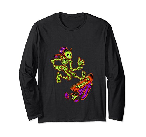 Unisex Skateboarding Skeleton Punk jumps Skateboard Long-sleeve Tee Large Black
