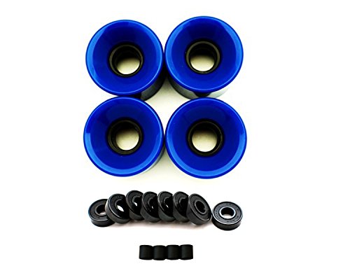 VJ Longboard Wheel & Bearings Set 70mm Long Board Wheels Abec 7 Skateboard Bearings and Skateboard Spacer (Blue)