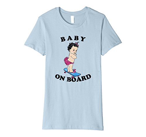 Womens Funny Pun Tee Skateboarding Skater T-Shirt Baby On Board Large Baby Blue